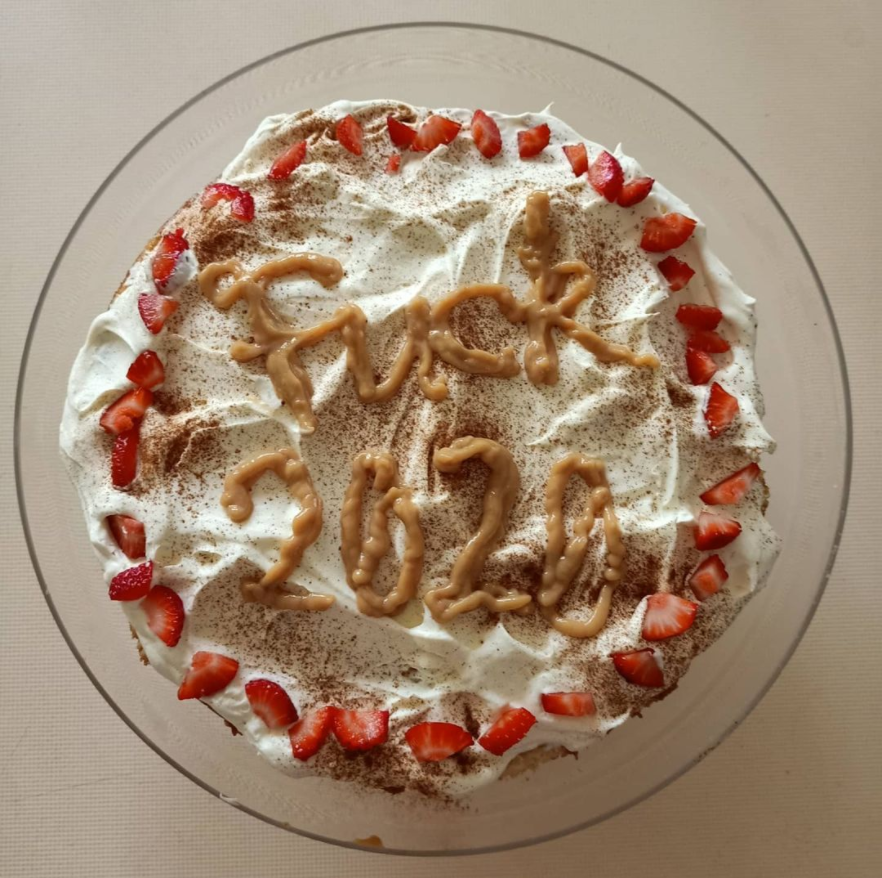 Decorate with whipped cream, cinnamon sprinkle, dulce de leche, and strawberries as desired.